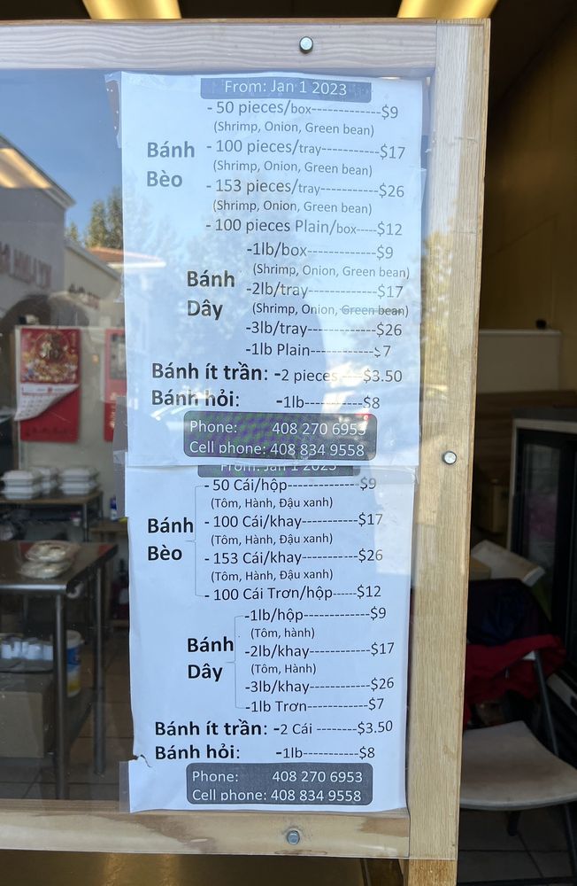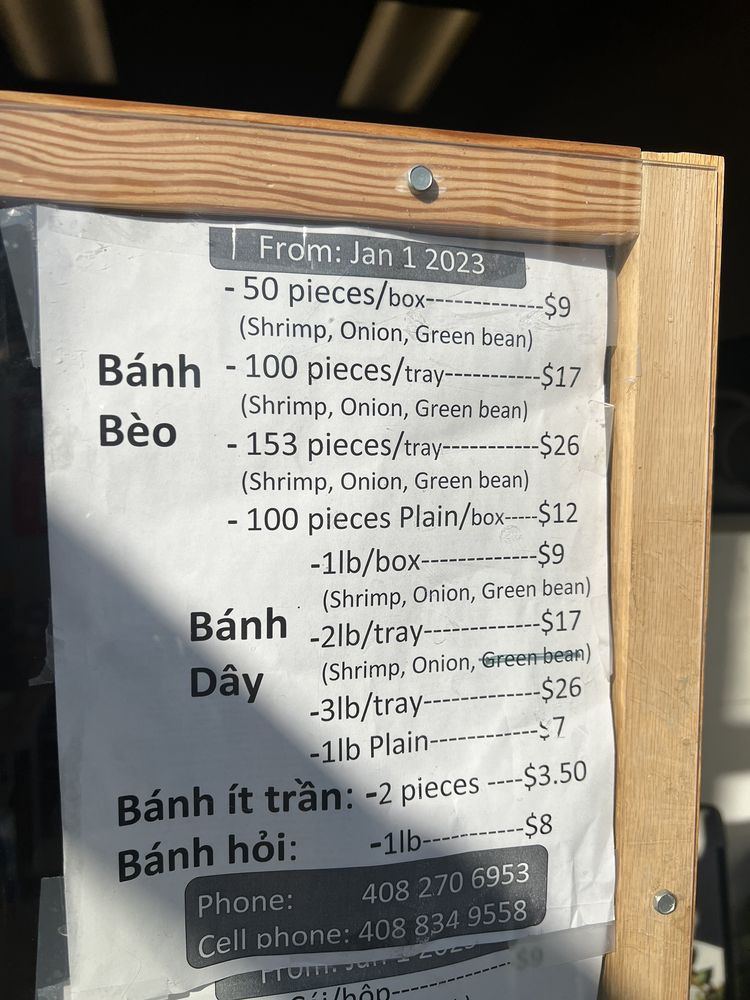Introducing the menu at Banh Beo Tolan, a Vietnamese restaurant located in San Jose, CA, known for its nostalgic and delicious banh beo. Customers rave about the thick, generously portioned rice cakes with flavorful toppings like egg yolks and dried shrimp floss. The nuoc cham, though slightly spicy, complements the dishes well. Prices are affordable, with options like a party tray of 100 banh beo for $18. The friendly staff and cozy atmosphere make it a great spot for gatherings or potlucks. Customer favorites include the banh beo party tray and the Banh Cuon rice noodles from the neighboring restaurant. Cash-only payment and Tuesday closures are noted. Overall, Banh Beo Tolan offers tasty, reasonably priced Vietnamese dishes in a welcoming setting.